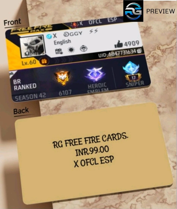 RG (FREE FIRE) CARDS