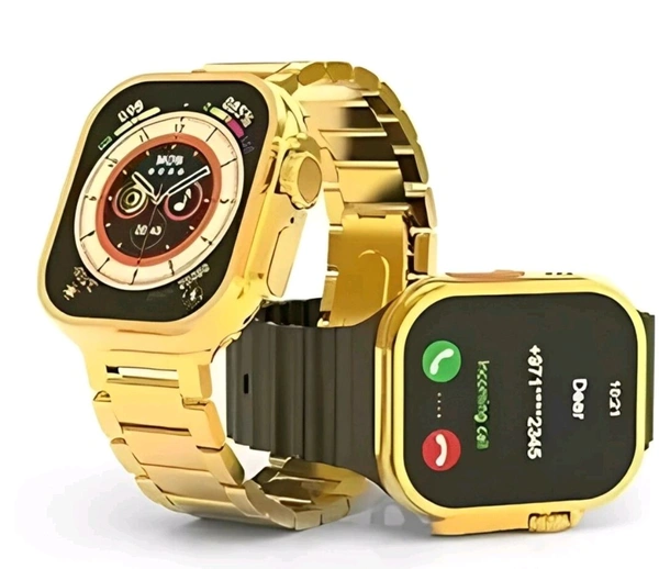 RG Ultra Dark Golden BT Microphone Calling with 25+ New Features NO Color Fade_ Smartwatch (Gold, Black Strap, Free Size)